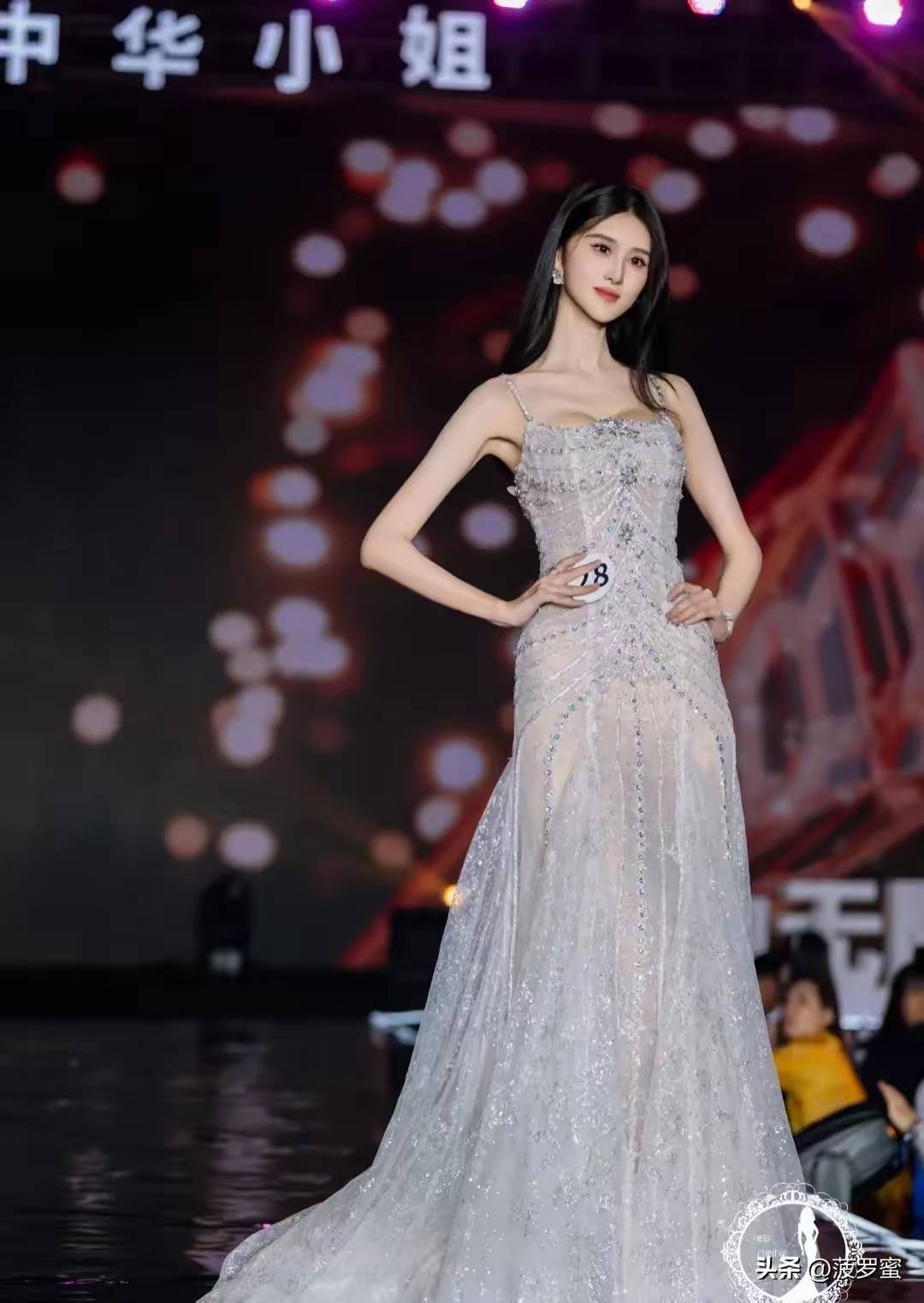 当然,选美圈从不缺美女,白舒能“杀出重围”靠的不只是颜值。她的182cm身高搭配“九头身”比例,往那一站就是行走的衣架子。更绝的是她的台风——在环球华商小姐总决赛上,她穿着高开叉礼服走秀时,裙摆飞扬的瞬间被摄影师抓拍,网友直呼“每一帧都是大片”。有专业人士分析,她的台步融合了护士职业训练出的稳定感和模特的表现力,这种独特的“刚柔并济”让她在一众选手中格外亮眼。